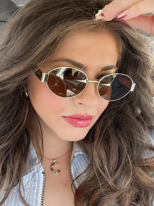 Shein - 1pc Women Oval Frame Metal INS Viral Street Fashion Retro Fashion Glasses