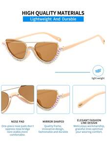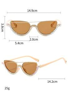 Shein - 1pc Women's Cat Eye Shaped Sunglasses With Rhinestone Decor, Korean Style Frame,