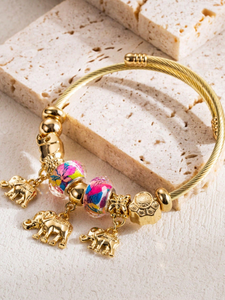 Shein - 1Pc Women'S Fashionable Elephant Charm Bracelet / Bangle / Hand Chain, Perfect For Daily Outfit And Accessories