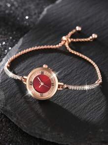 Shein - 1pc Women's Gold Bracelet Style Pull-Out Strap Fashion Casual Simple Water Diamond Round Dial Quartz Watch
