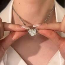 Shein - 1pc Women's Multi-Layer Magnetic Zirconia Heart Pendant Necklace