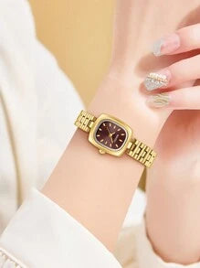 Shein - 1pc Women's Retro Luxury Stainless Steel Band Personality Watch