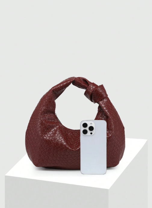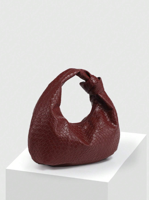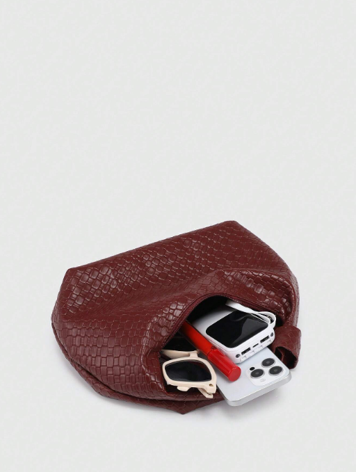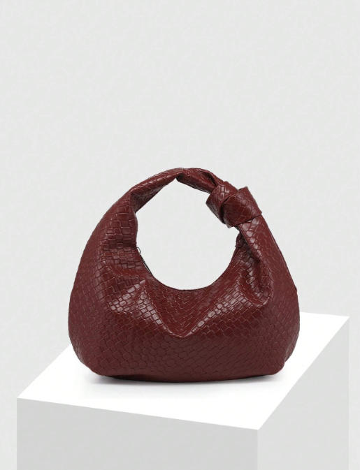 Shein - 1pc Women's Vintage Minimalist Casual Faux Woven Leather Underarm Baguette Bag