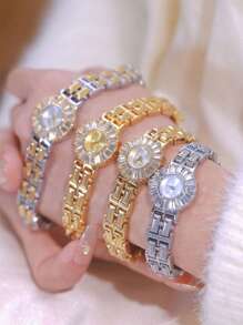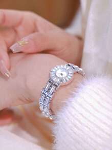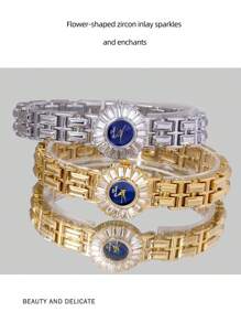 Shein - 1PC Women's Watch Flower Shaped Luxurious Jewelry Watch Waterproof Quartz Watch
