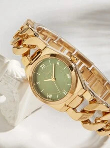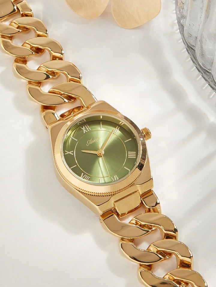 Shein - 1pc XIVIYA Ladies Gold Minimalist Adjustable Cubana Quartz Watch