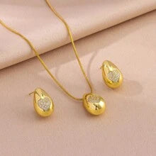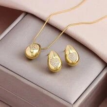 Shein - 1set 18K Gold Plated Classic Zirconia Heart Water Drop Snake Bone Chain Necklace