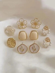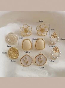 Shein - 1set Minimalist Flower And Pearl Decorated Fashion Earring Set