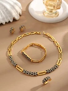 Shein - 1set Retro Bronze Alloy Oil Drip, Rhinestone Inlaid Snake Pattern Design Necklace set