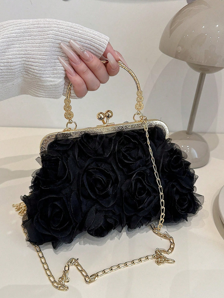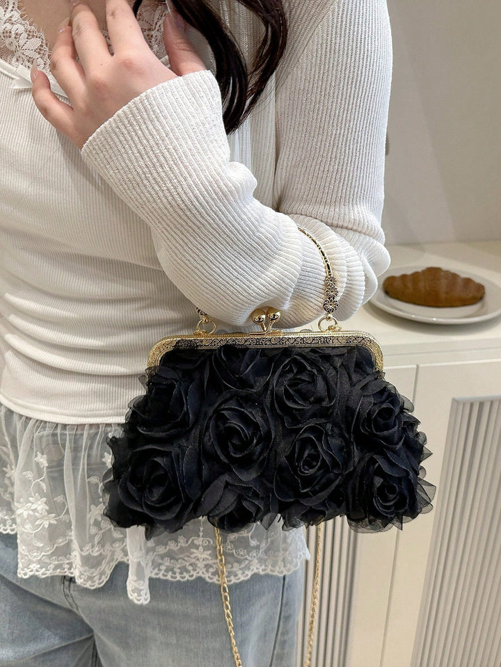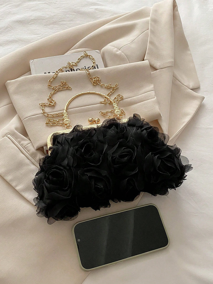 Shein - 2025 New Chain Flower Clutch Bag, Fashion Lady Handbag