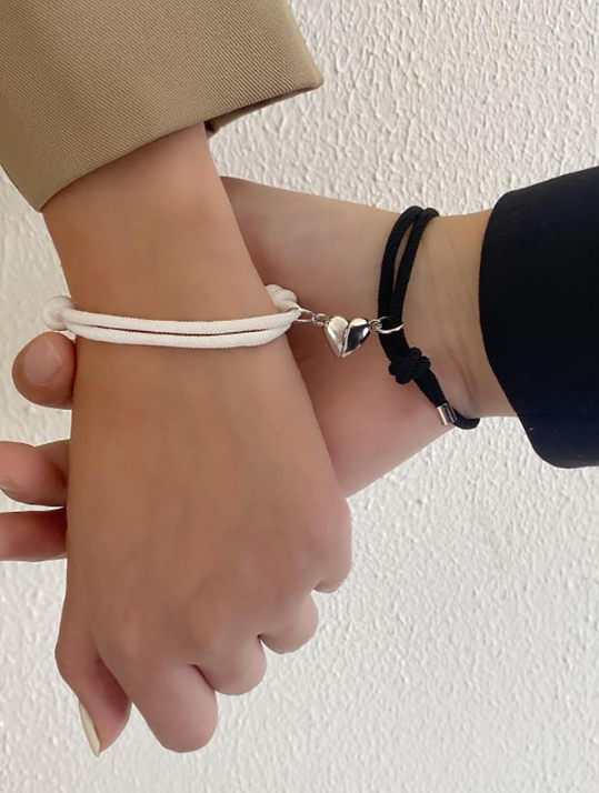 Shein 2pcs Minimalist Magnetic Heart Shaped Couple Bracelet Set