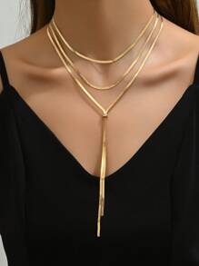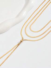 Shein - 2pcs/Set Minimalist & Personalized Long Multi-Layer Snake Bone Chain Necklace