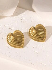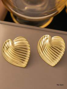 Shein - 2pcs/Set Retro Elegant Queen Heart Shaped Stainless Steel Stud Earrings