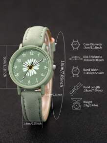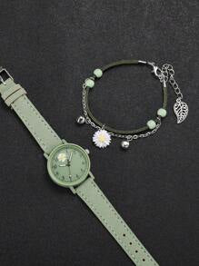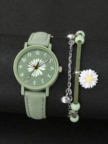 Shein - 2pcs/Set Women's Fashion Floral & Numeral Dial Quartz Watch