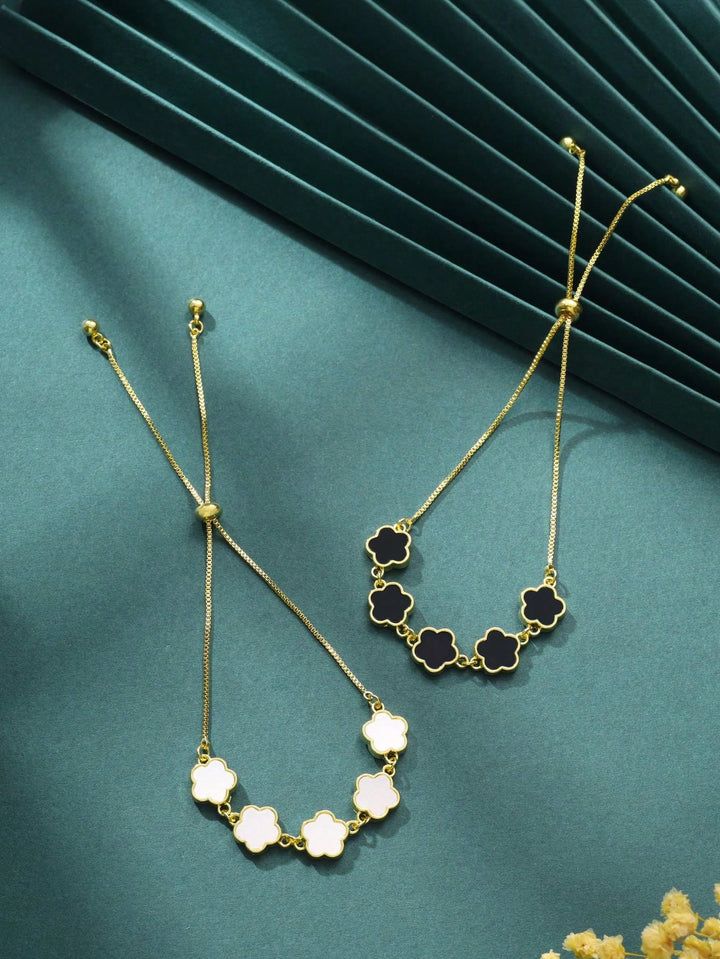 Shein - 2pcs Simple Chic Lucky Five-Petal Flower Shaped Adjustable Copper Bracelet For Women - Great For Date/Birthday Gift