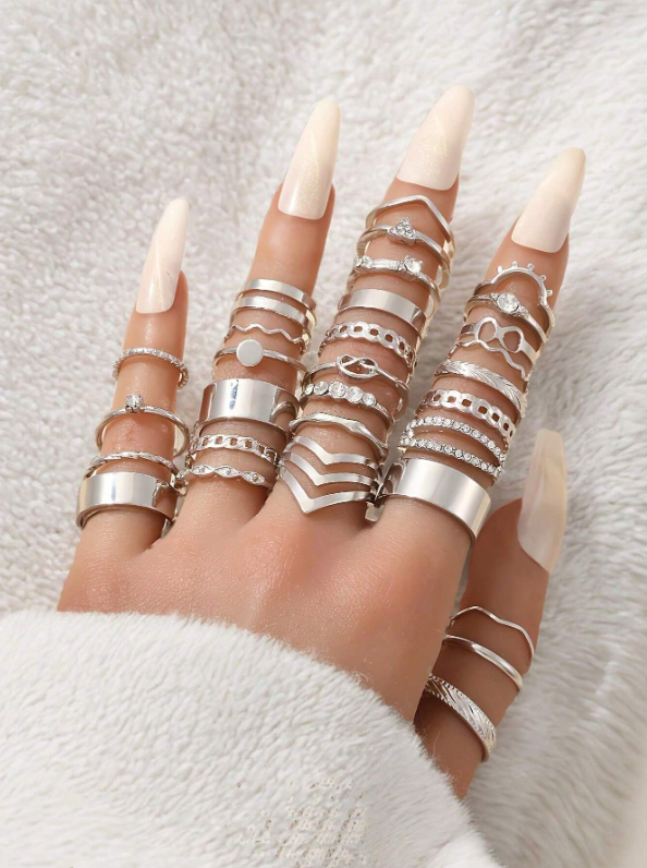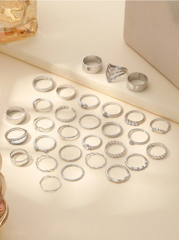 Shein - 30pcs Vintage Punk Style Women's Metal Stacking Ring Set
