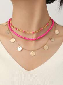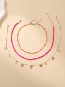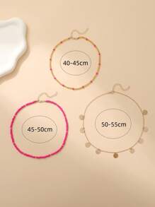 Shein - 3pcs Bohemian Style Flat Beads Chain Necklace