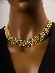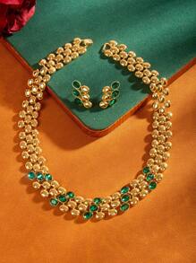 Shein - 3pcs Metal Inlay Colorful Stone Exaggerated Necklace Set