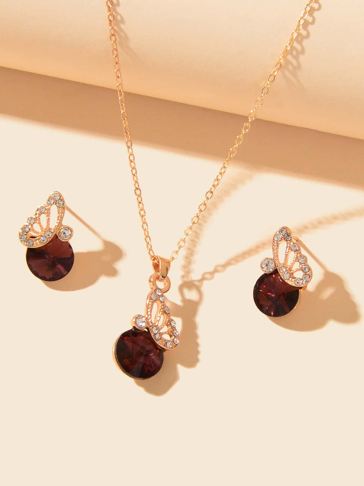 Shein - 3Pcs Rhinestone Butterfly Decor Jewelry Set