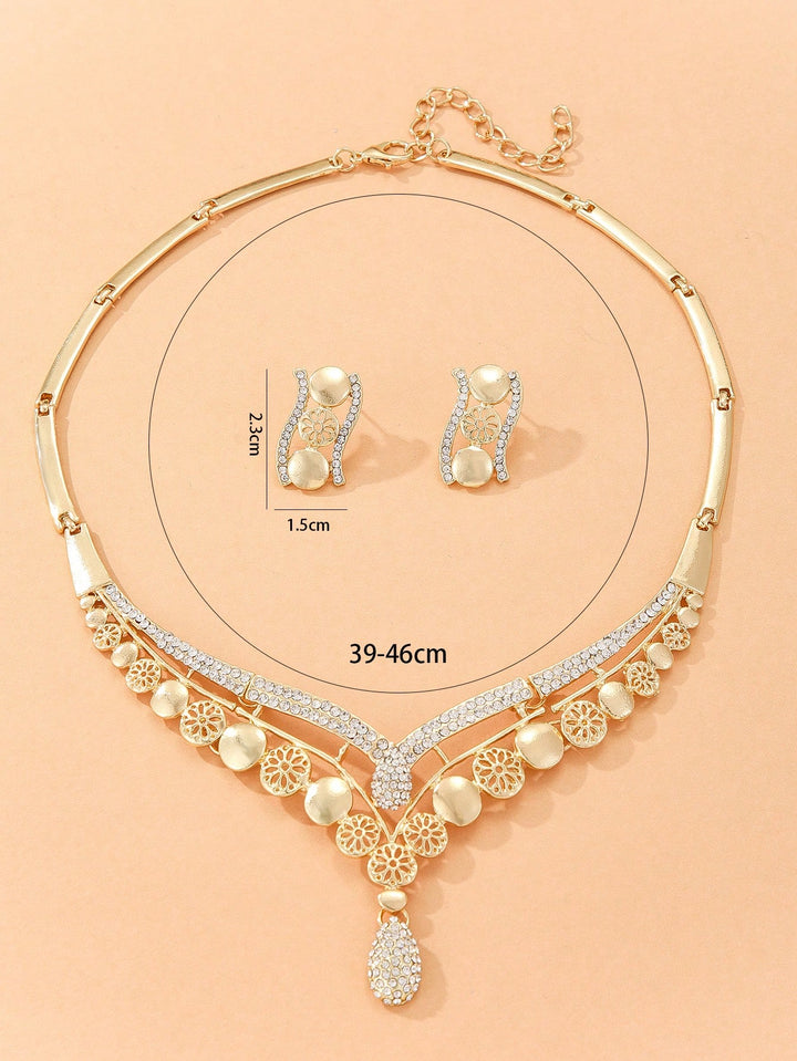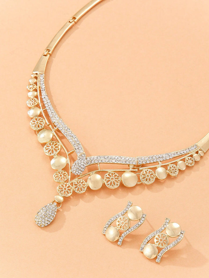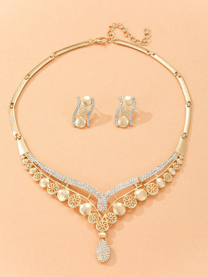 Shein - 3Pcs/Set Glamorous Rhinestone Decor V-Shaped Jewelry Set For Women For Banquet Jewelry