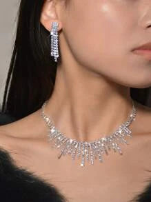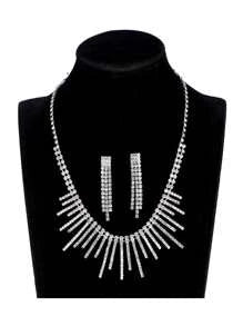 Shein - 3pcs/set Rhinestone Decor Jewelry Set Copper Jewelry