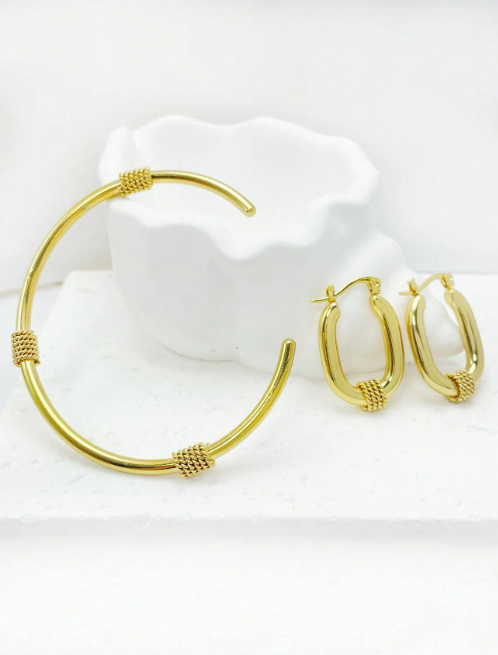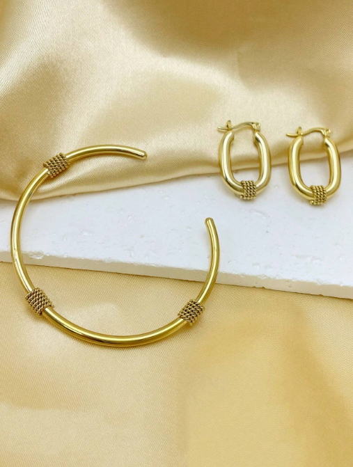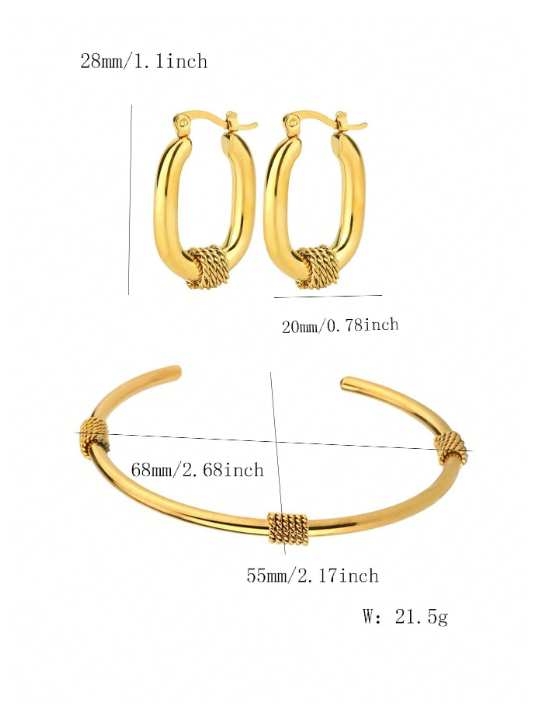 Shein - 3pcs Stainless Steel Retro Gold Bracelet Set, Simple Chain U-Shaped Earrings, Designer Luxury Earrings