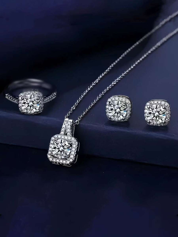 Shein 4pcs/set Luxury Square Rhinestone Necklace Earrings Ring Set Party Suit Formal Dress Accessory