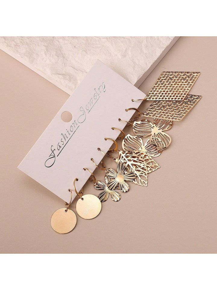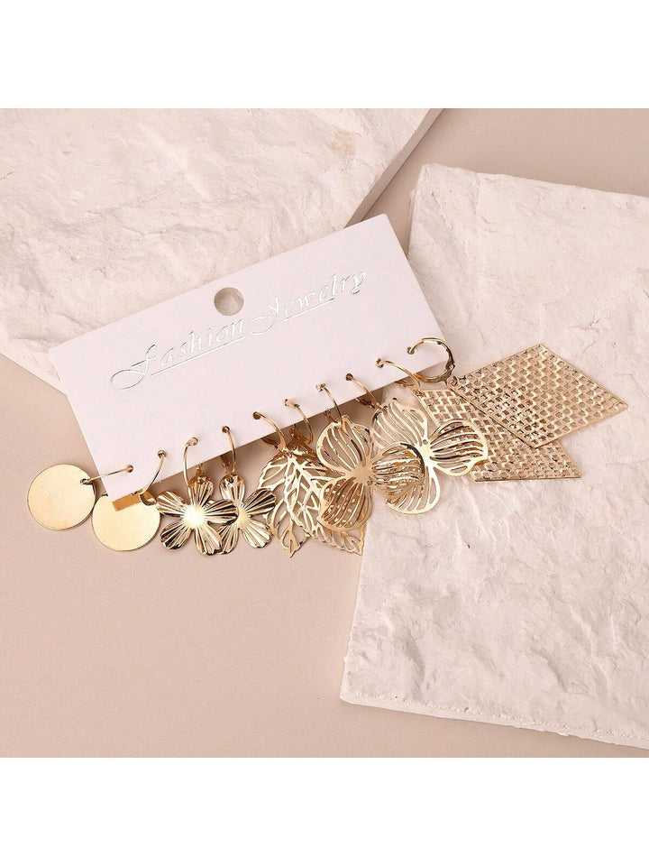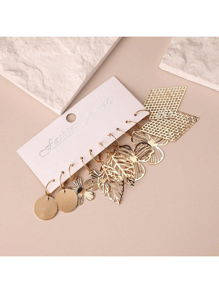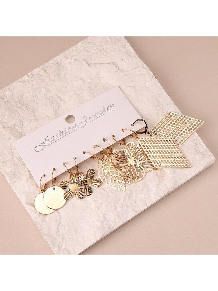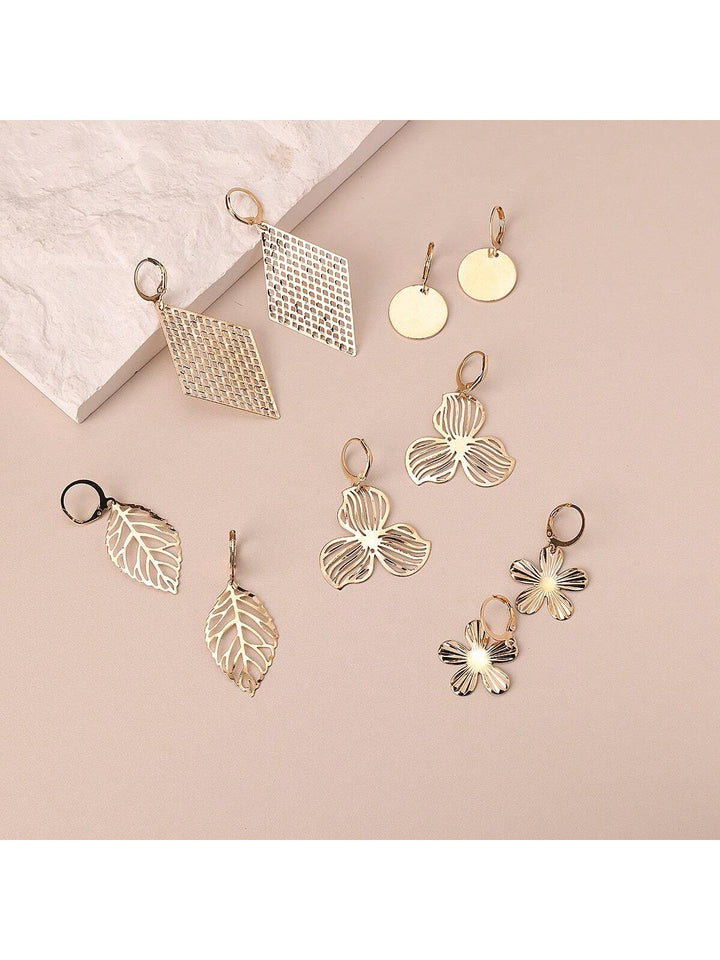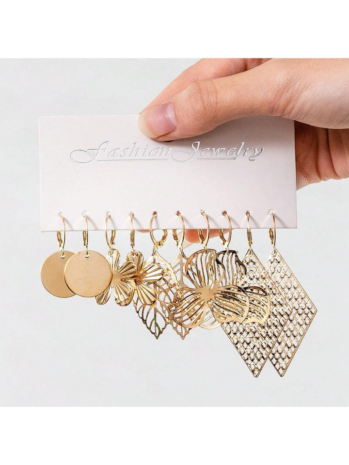 Shein - 5pairs Fashionable Hollow Out Diamond & Leaf & Flower & Round Shape Dangle Earrings Set