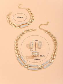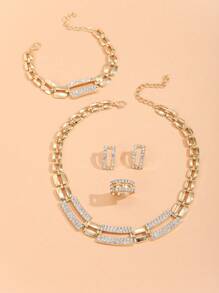 Shein - 5pcs/set Gold-color Zinc Alloy Square Shaped Diamante Decoration Jewelry