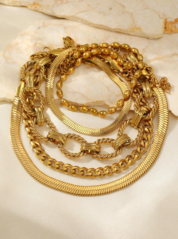 Shein - 5pcs/Set Stainless Steel Multilayer Chain Bracelet Set