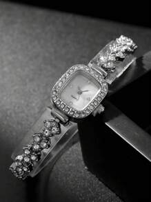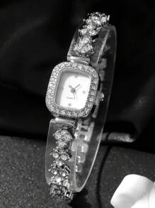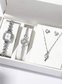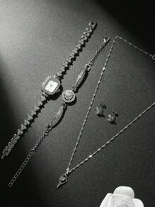 Shein - 5pcs Trendy Rhinestone Decorated Women's Chain Strap Watch Set