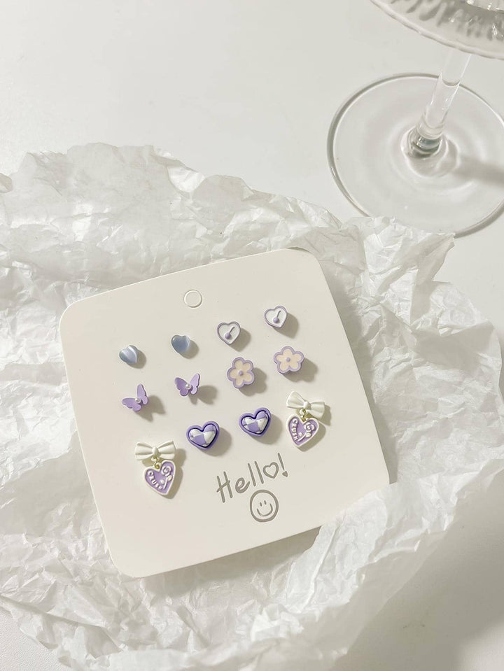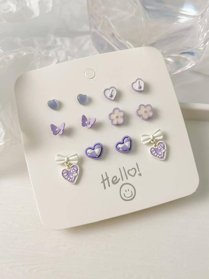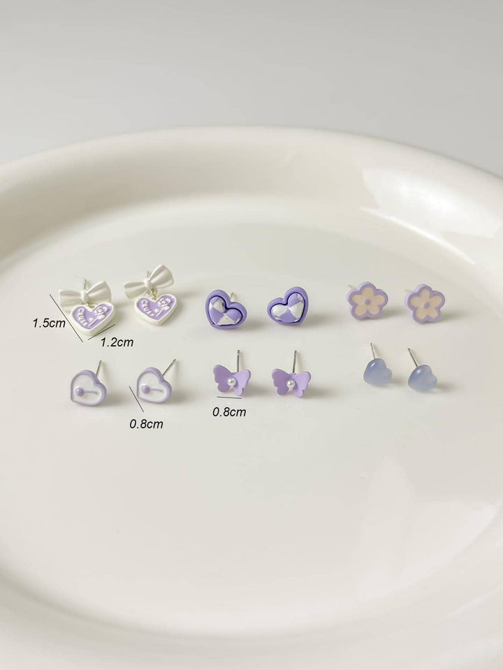 Shein - 6 Pairs Tiny Pink Bow & Heart Stud Set For Women Girls Party Gifts