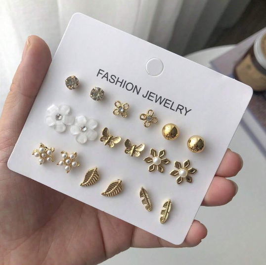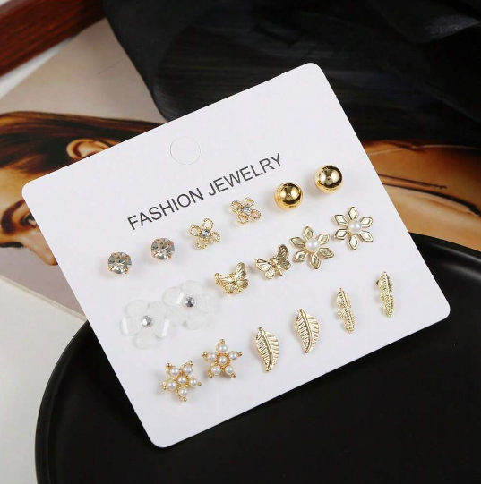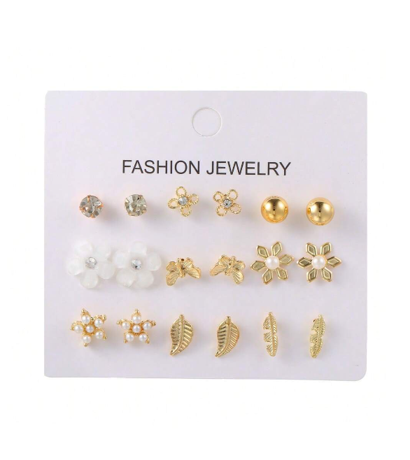 Shein - 9pairs Butterfly & Flower Decor Stud Earrings