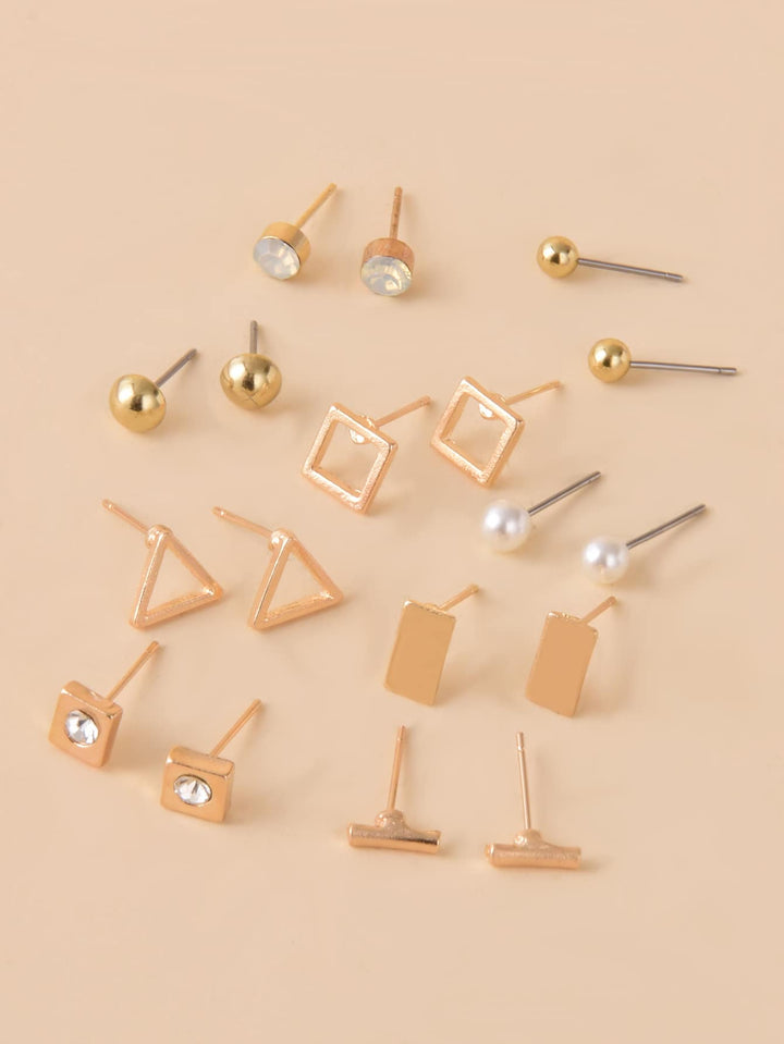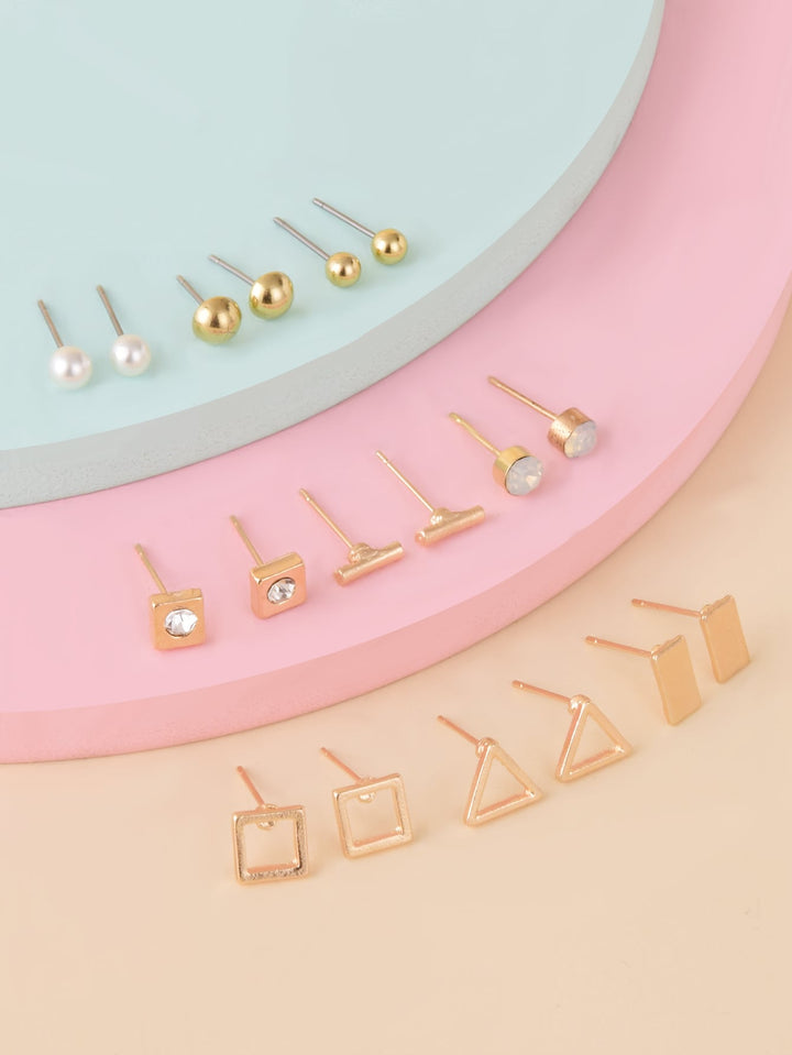 Shein - 9pairs Faux Pearl Decor Stud Earrings