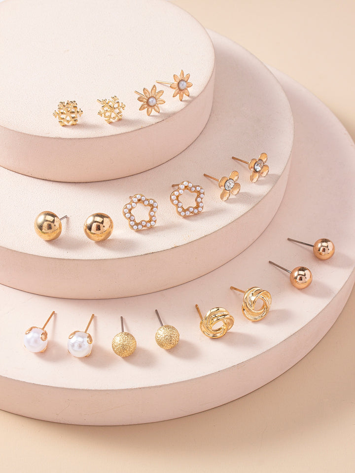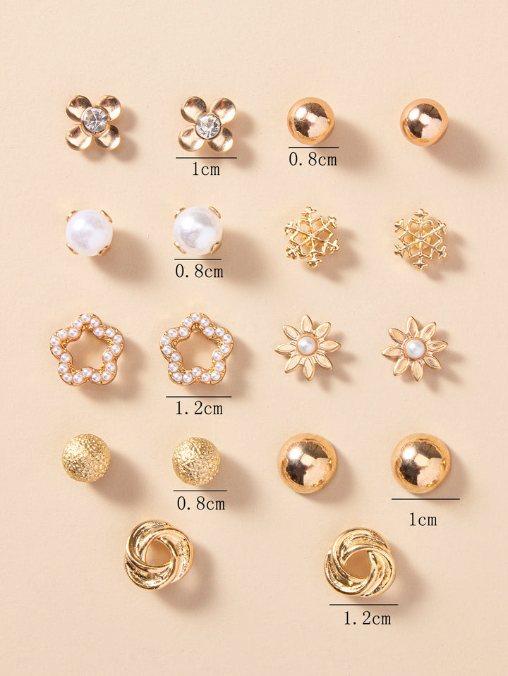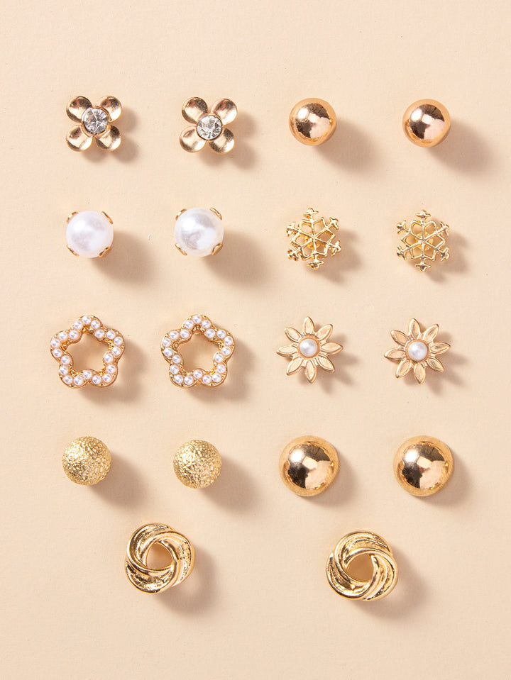Shein - 9pairs Faux Pearl & Flower Decor Stud Earrings