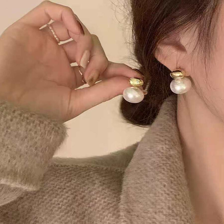 Shein A pair of European and American style gold plated pearl stud earrings for women's daily wear