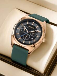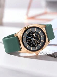 Shein - ABORNI 1pc Women's Fashion Waterproof Silicone Band Quartz Watch With Calendar