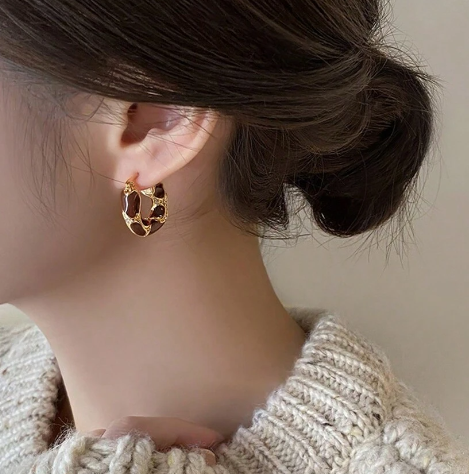 Shein - Andkiss 1 Pair Simple Elegant Minimalist Oil-Drop U-Shaped Earrings