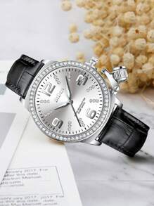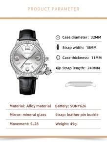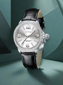 Shein - BIDEN 1pc Women's Watches, Leather Casual Waterproof Quartz Watches