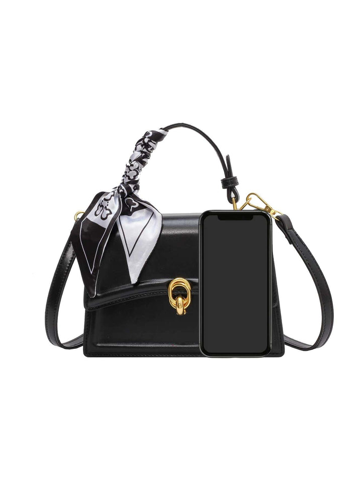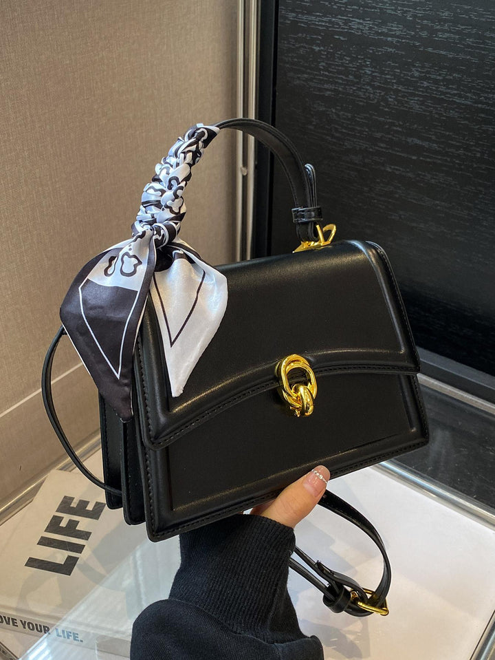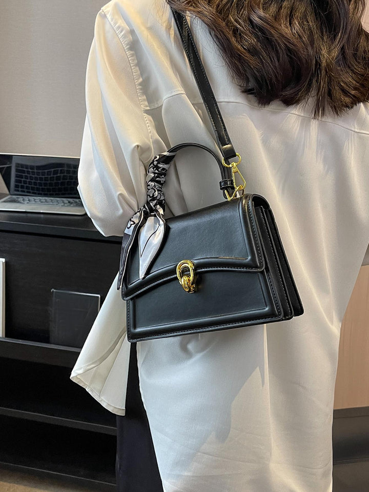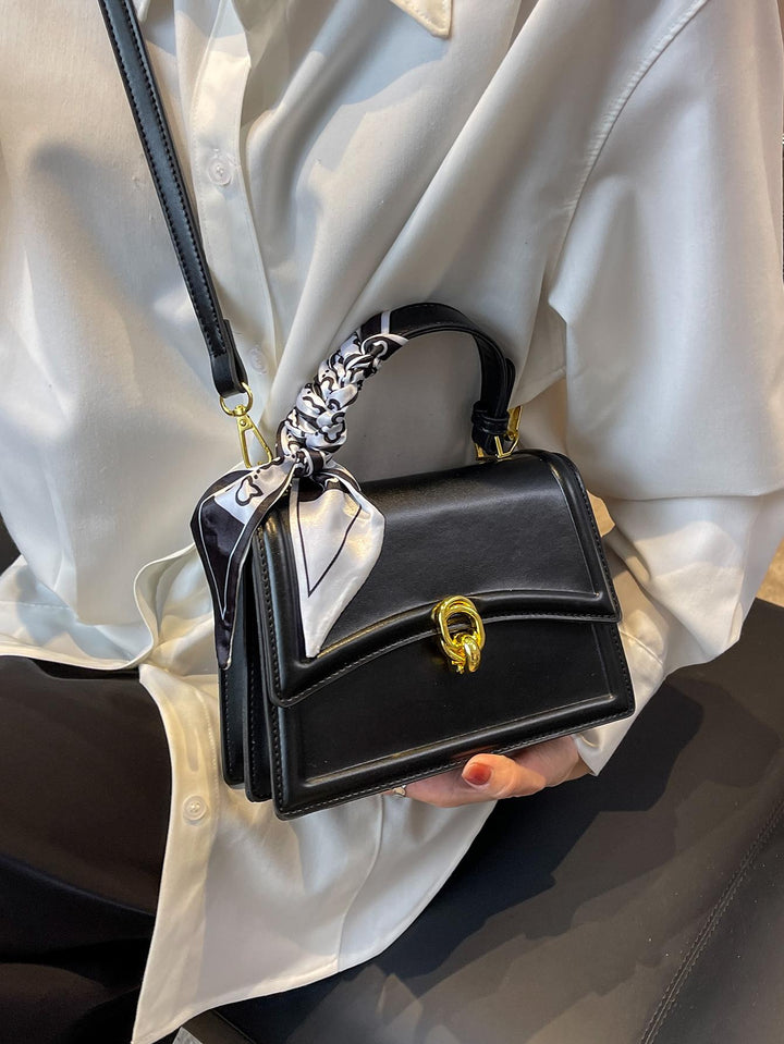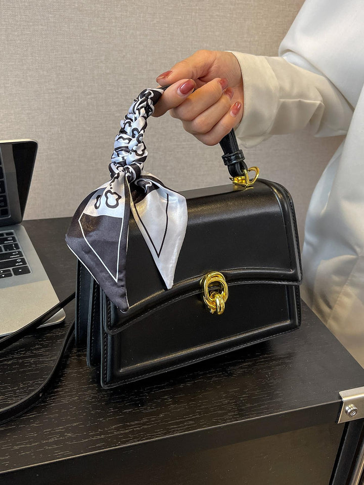 Shein - Bow Decor Mini Black Skinny Scarf Decorated Flap Square Crossbody Bag With Adjustable Shoulder Strap