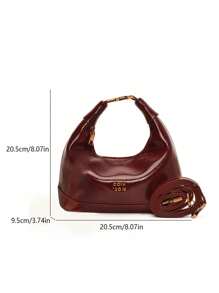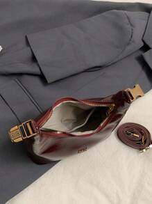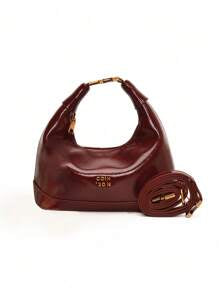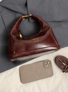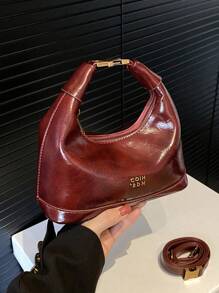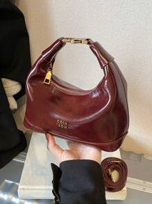 Shein- Burgundy Vintage Waxed Leather Glossy Handbag