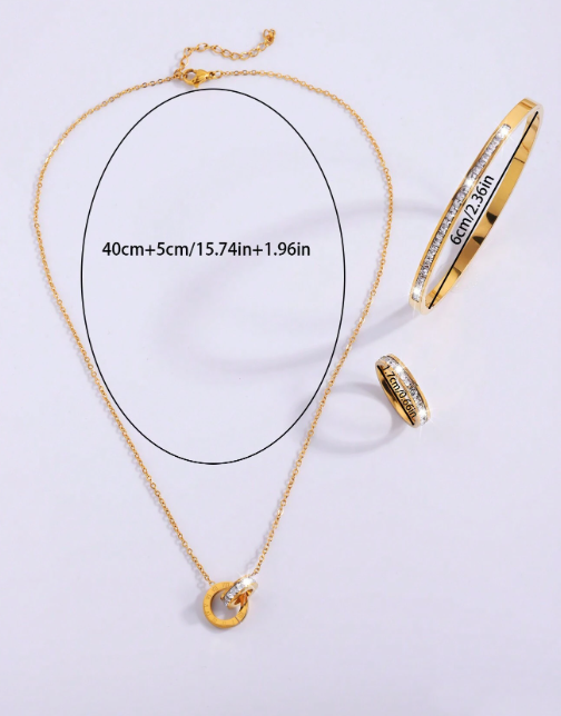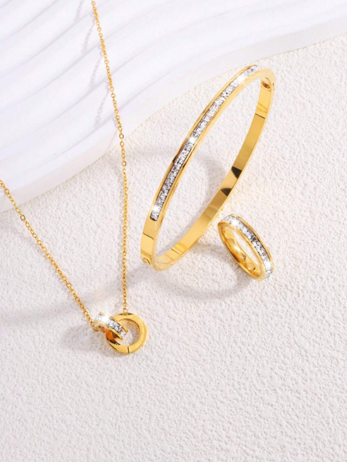 Shein - Camhanno 3 Pieces Of Exquisite And Fashionable Stainless Steel Single-Row Diamond Bracelet + Earrings + Necklace Set