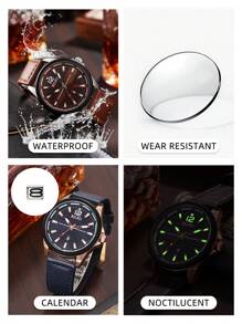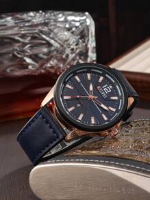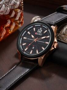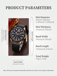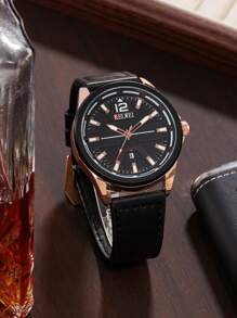 Shein - Casual Sports Watch For Men, New Quartz Watch With Leather Strap Black