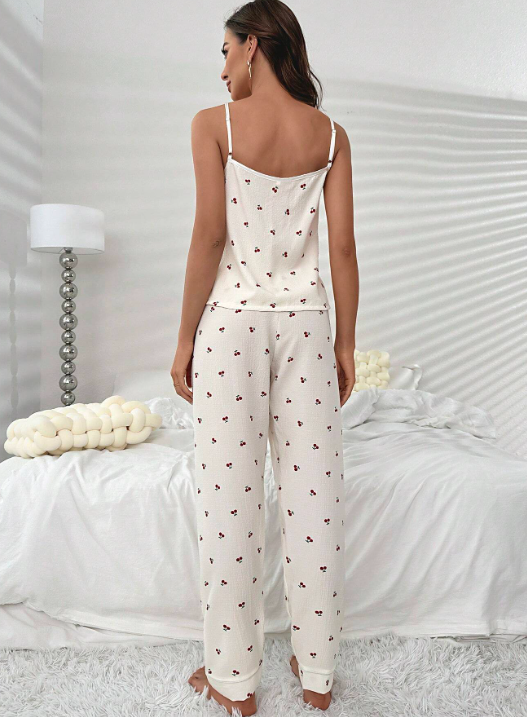 Shein - Cherry Print Cami Top & Pants PJ Set
