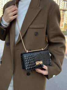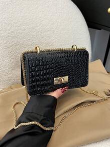 Shein - Crocodile Embossed Small Square Bag