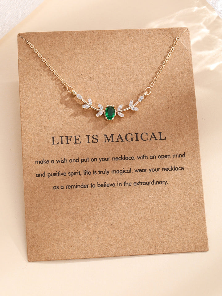 Shein - Cubic Zirconia Leaf Charm Necklace
