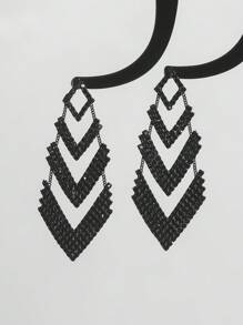 Shein - Europe And The United States Exaggerated Retro Black Long CZ Crystal Earrings