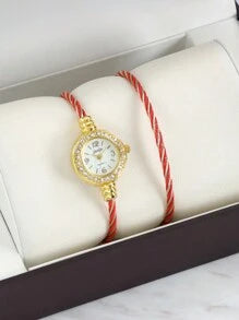 Shein - Exquisite Ancient-Style Gold Bangle Set, Quartz Watch & Simple Artistic Style Bracelet