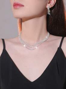 Shein - Fashion Shining Bling Crystal Rhinestone Necklace Earrings Set
