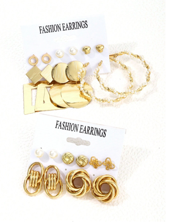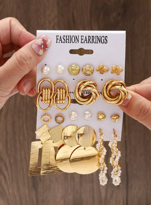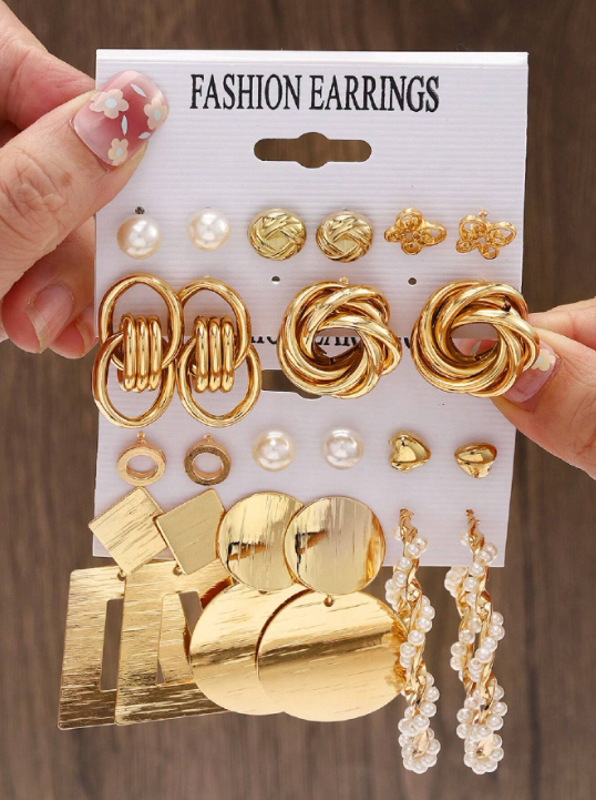 Shein - Fashionable Creative Geometric Shaped Earring Set For Women, Girls, Great Choice For Daily, Couple'S Valentine'S Day, Anniversary Gift