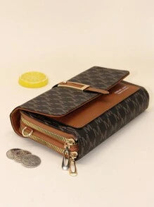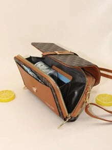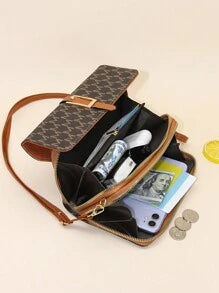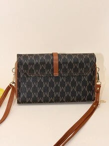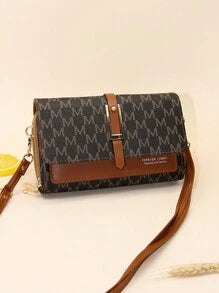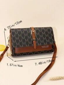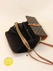 Shein - Fashionable Letter Printed Shoulder Strap Flap Crossbody Bag With Double Zipper, Interior Zipper Pocket